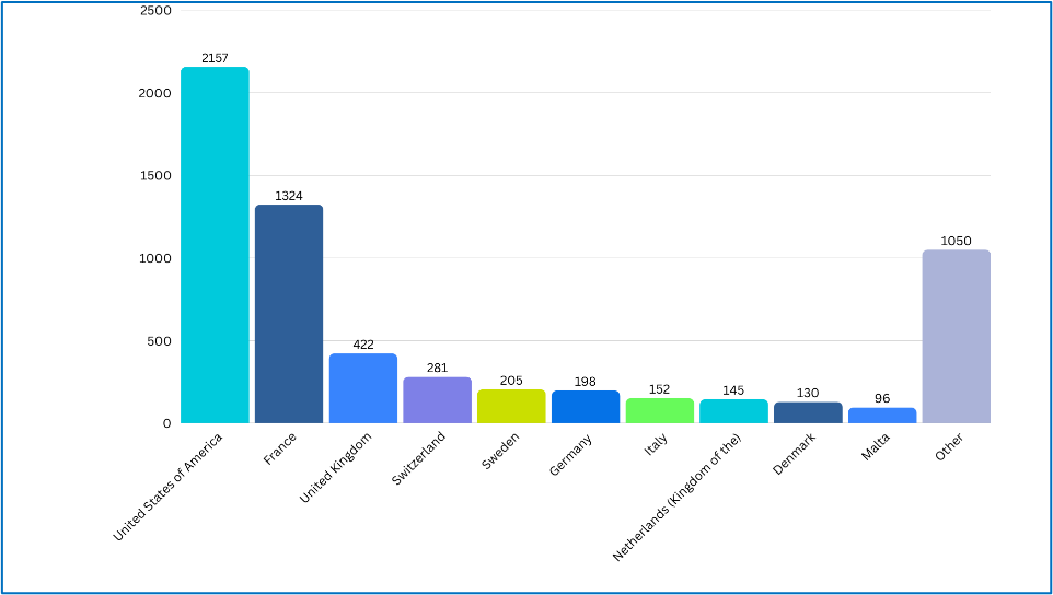 The top 10 ccTLDs in 2024 in terms of domain name case filings were: .CO (Colombia), .AI (Anguilla), .CC (Cocos Islands), .ES (Spain), .CN (China), .NL (Kingdom of the Netherlands), .SE (Sweden), .IO (British Indian Ocean Territory), .BR (Brazil), and.EU (European Union).